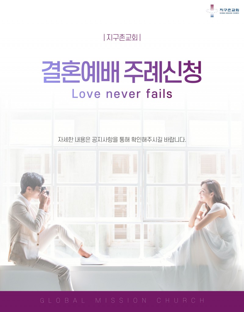 2) 본 교회 신랑신부는 반드시 구원의 확신이 분명한 그리스도인이어야 하며, 적어도 신랑신부 두 사람 중 한 사람이 본 교회 등록 후 6개월 이상 출석한 등록교인(새생명, 새가족, 목장교회생활 이수자) 이어야 합니다.