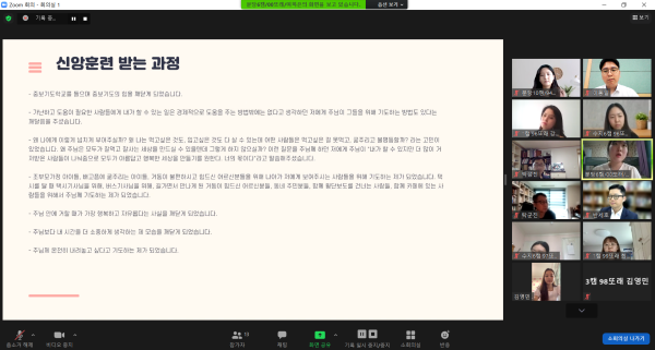 6월에 진행된 마지막 멘토링은 멘티들이 3개월동안 노력한 과제를 발표하고, 대학지구 내에서 참여한 "어 성경이 읽어지네", "중보기도학교", "제자훈련" 등 신앙훈련을 통해서 경험한 은혜를 간증으로 나눈는 시간을 가졌습니다.